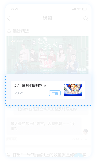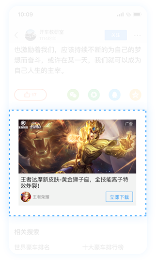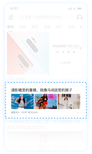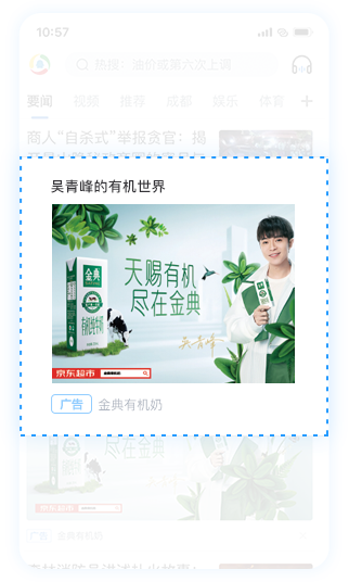 優質的信息流原生展示環境,在良好的閱讀體驗中高效傳達品牌信息